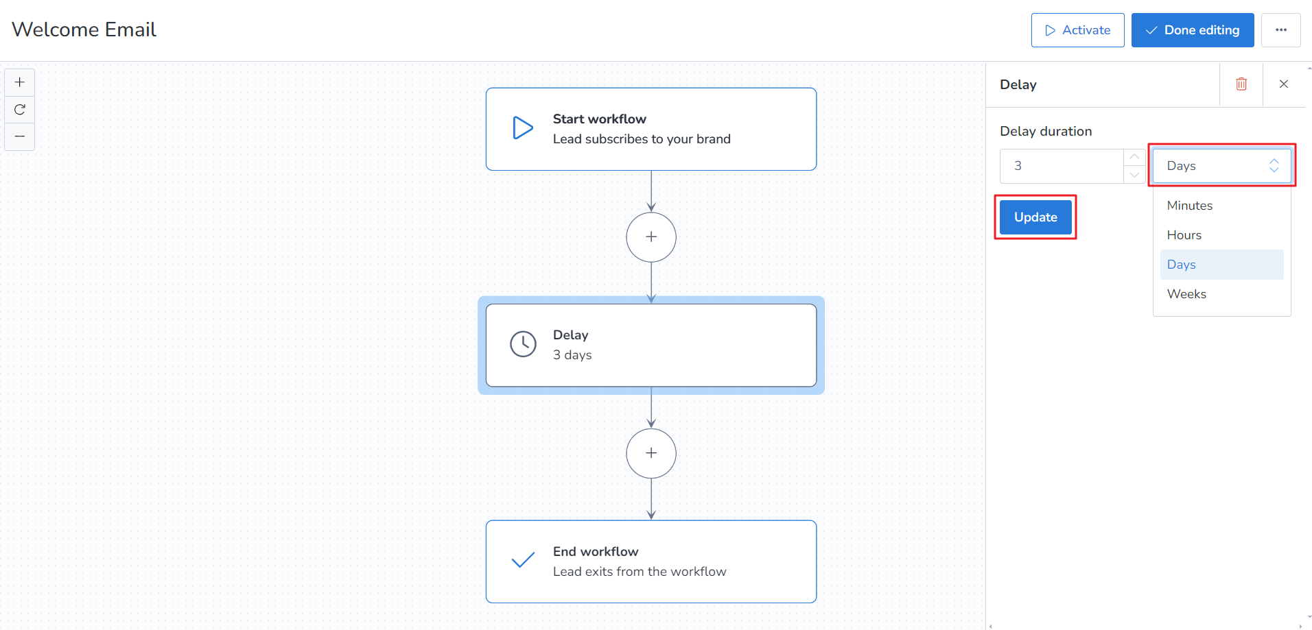 Also, if you fail to enable this trigger before starting the workflow, the subscribed leads will not receive automation emails.