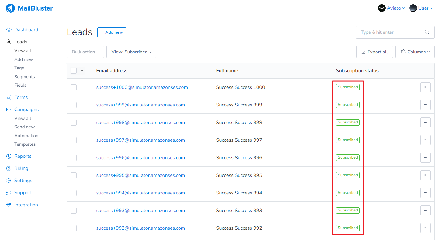 14. The subscribed leads will receive the Automation campaigns.