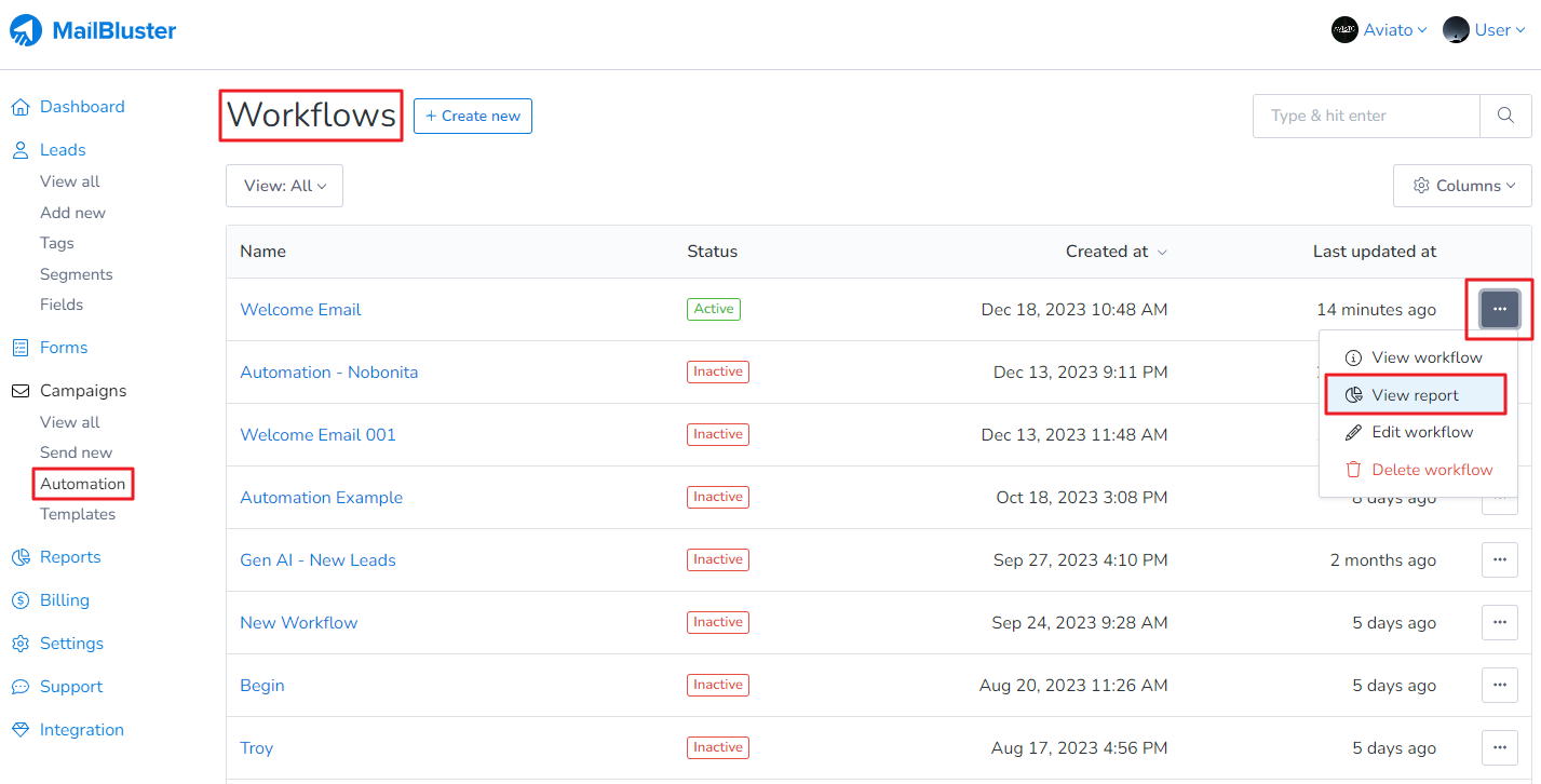 Here is how you can access the report of your individual Automation workflow.