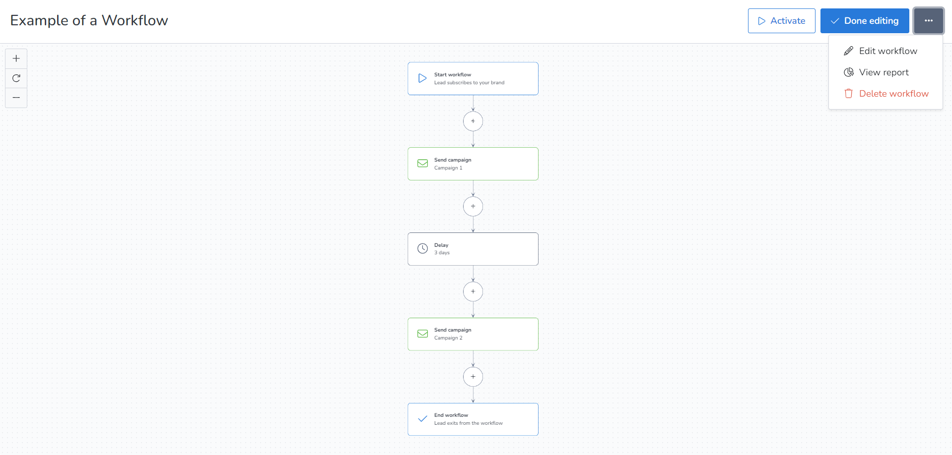This is an example of an Automation workflow in MailBluster: