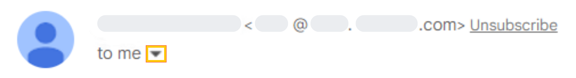 By opening your sent emails, recipients see your display name, picture, unsubscribe link, and email address, along with a “below” sign indicating “to me” on the right side.