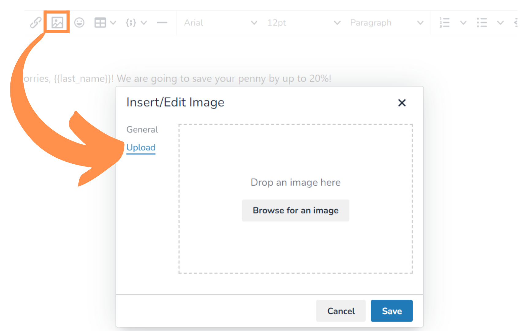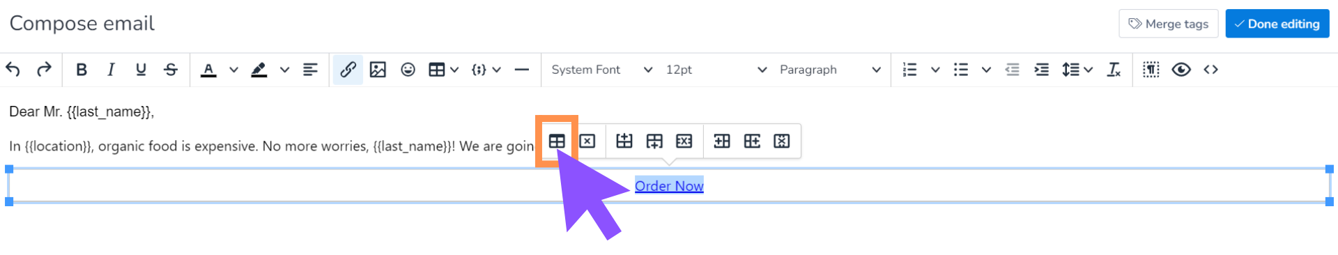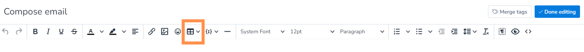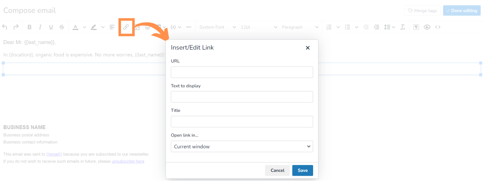 You will be directed to a page like the one below, where you can click the “insert merge tag” icon to personalize your email.