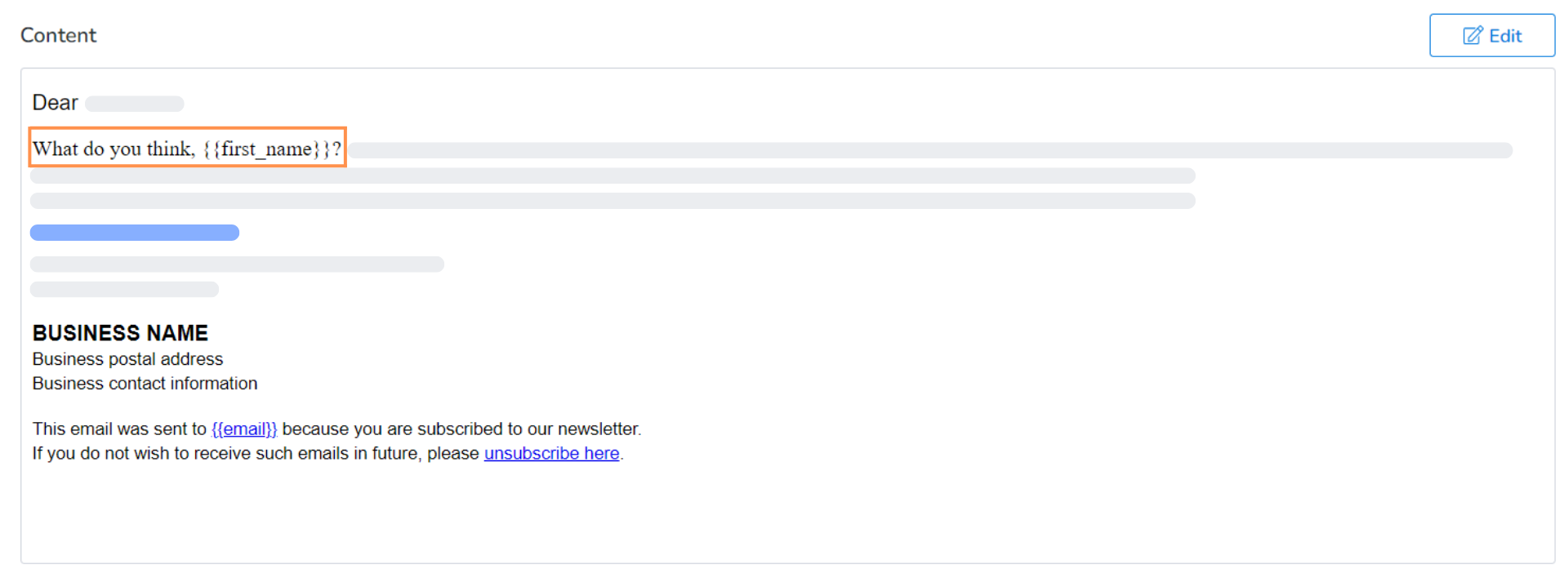 To modify the personalization structure, click “Edit” in the upper-right corner of the content field.