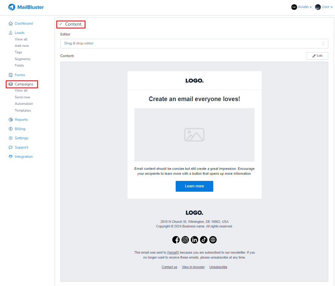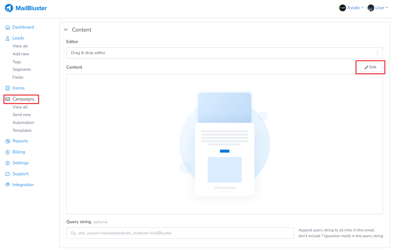 Click on the Drag and Drop Editor on the edit campaign page. It will take you directly to the Compose email, where you can easily design your email content.