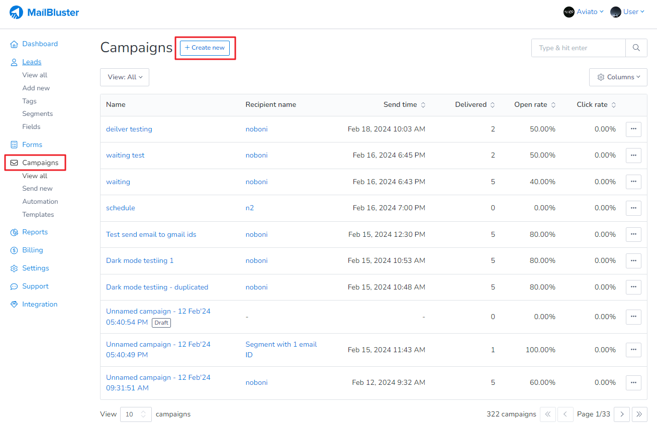 Now go to Campaigns > Create new