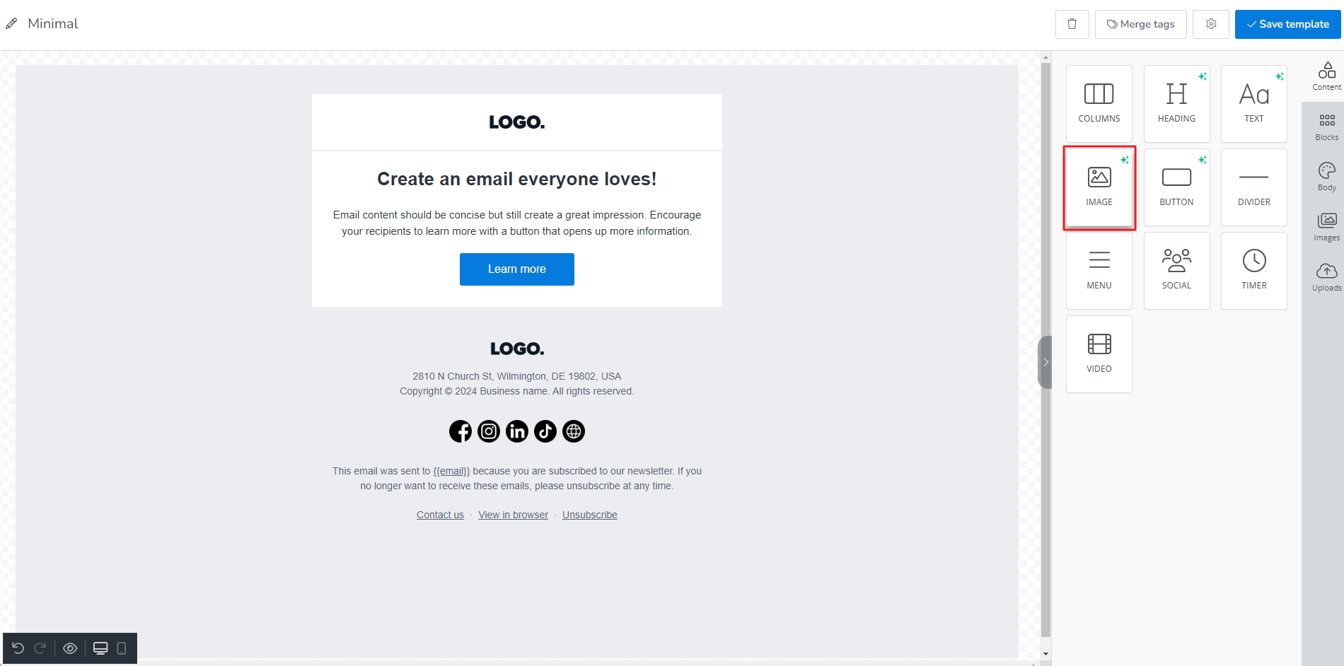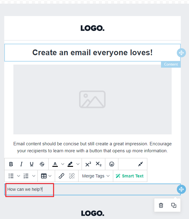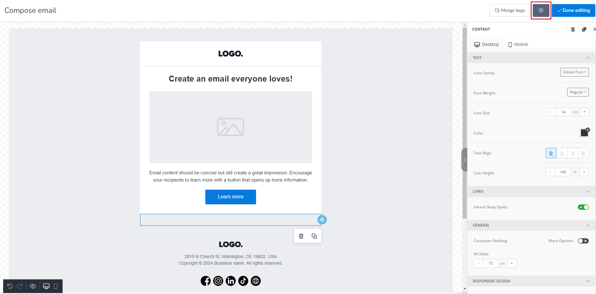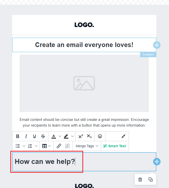 The most common and easy-to-use editor is the Drag and Drop Editor. Emails composed with this editor are responsive and do not require programming or coding knowledge.