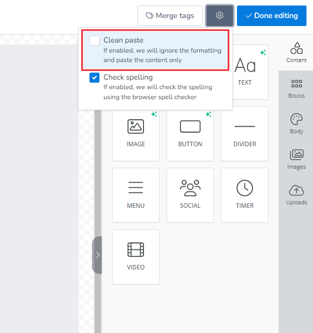 Once you completed designing your campaign, click Done Editing to save your email campaign.