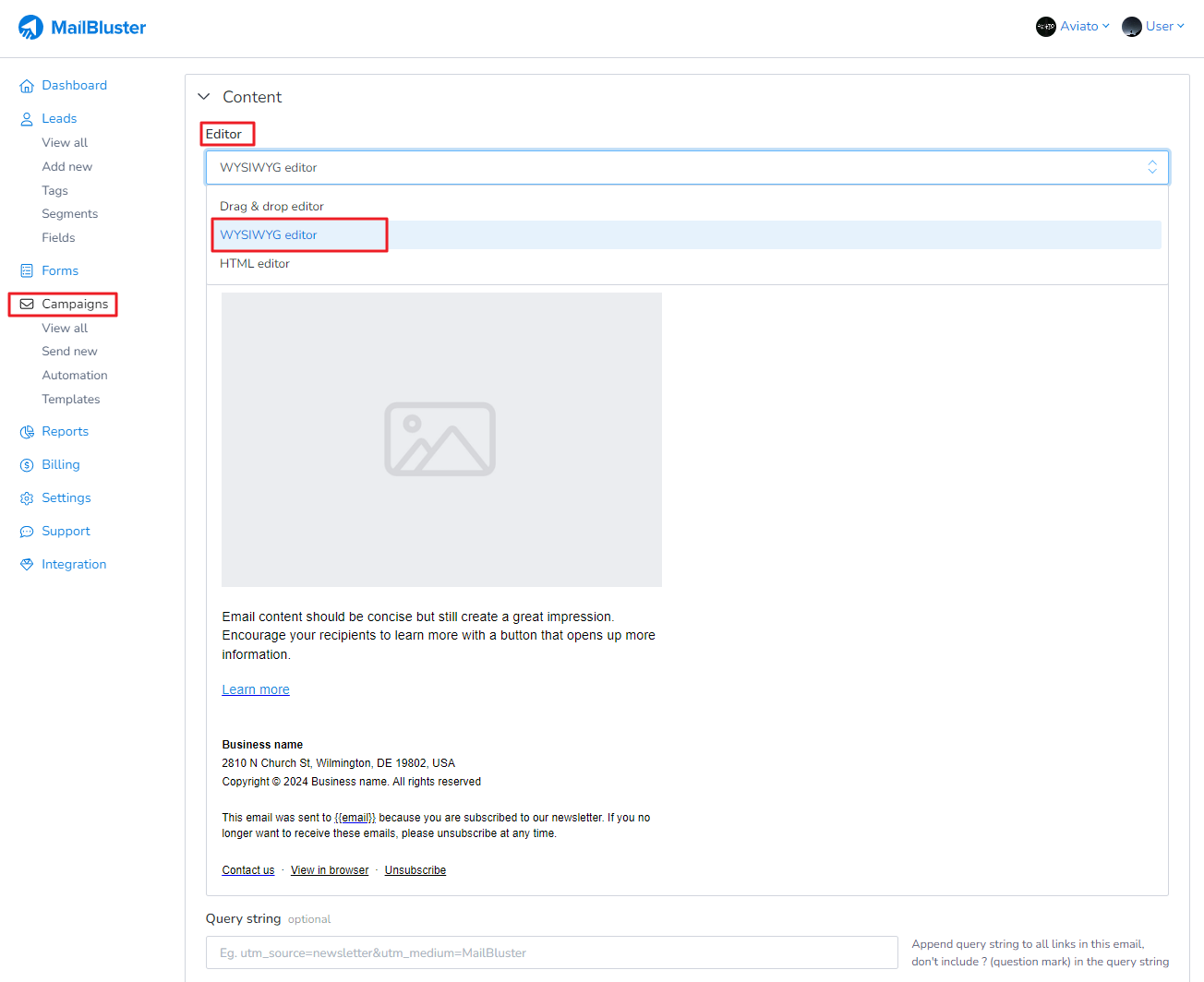 MailBluster has three types of email editors which you can use to compose your email campaign: