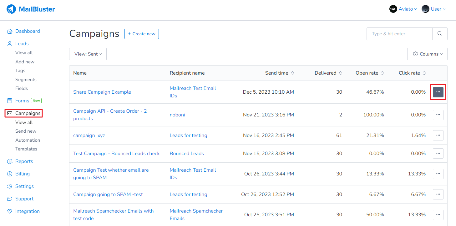 Here we selected a sample campaign. Click on the 3 dots as shown here: