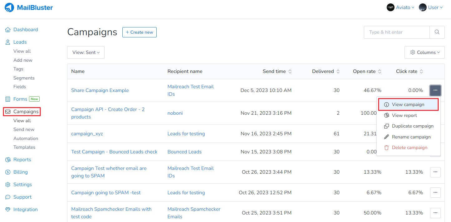 You can share your already sent campaign very easily with anyone using MailBluster share campaign feature and view it in browser, social media etc. First go to your Brand > Campaigns.