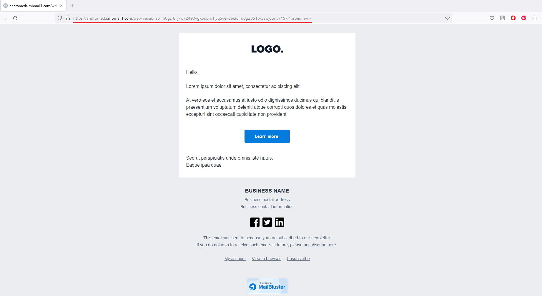 7. Once viewed the email in inbox, it will show like this as shown below. If clicked it will take you to MailBluster’s default unsubscribe page.