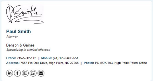 - The email footer section has both closing and sign off parts. The email closing is “Talk soon,” and below that, placed the email sign off. The sender signs off the email with his name and contact info. The sender has also attached an image of him with the email sign off.