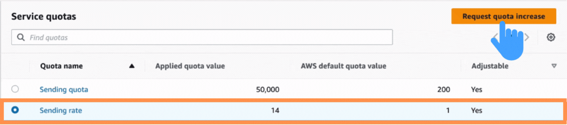 Again, go back to the previous page. Select the “Sending rate” and click the “Request quota increase” button.