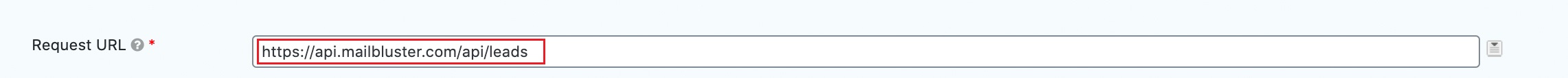 2 Request URL: Enter the URL where this request will be sent to. We have entered (https://api.mailbluster.com/api/leads), for example. This setting also supports merge tags.