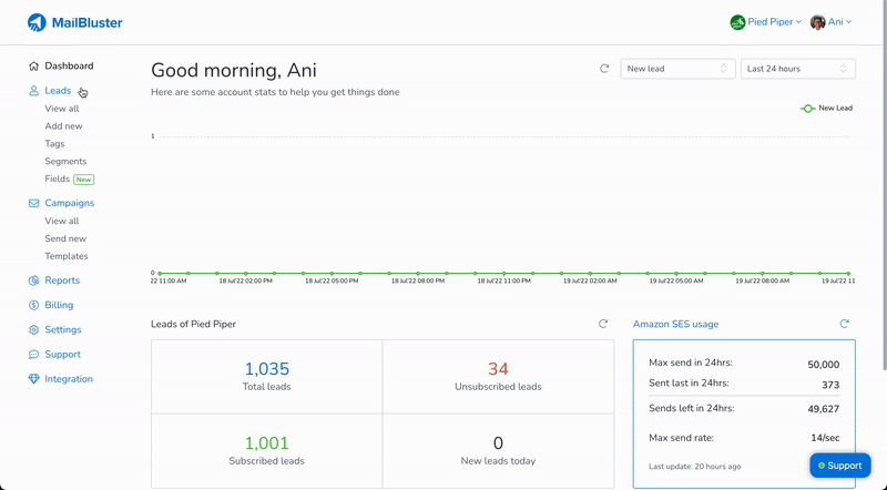 MailBluster does not allow duplicate email IDs or leads. If a duplicate email ID is found, the lead information is either updated or skipped based on your preferences.