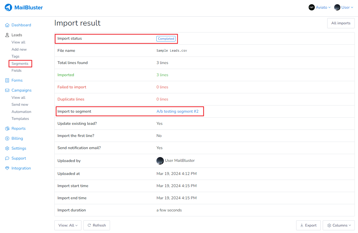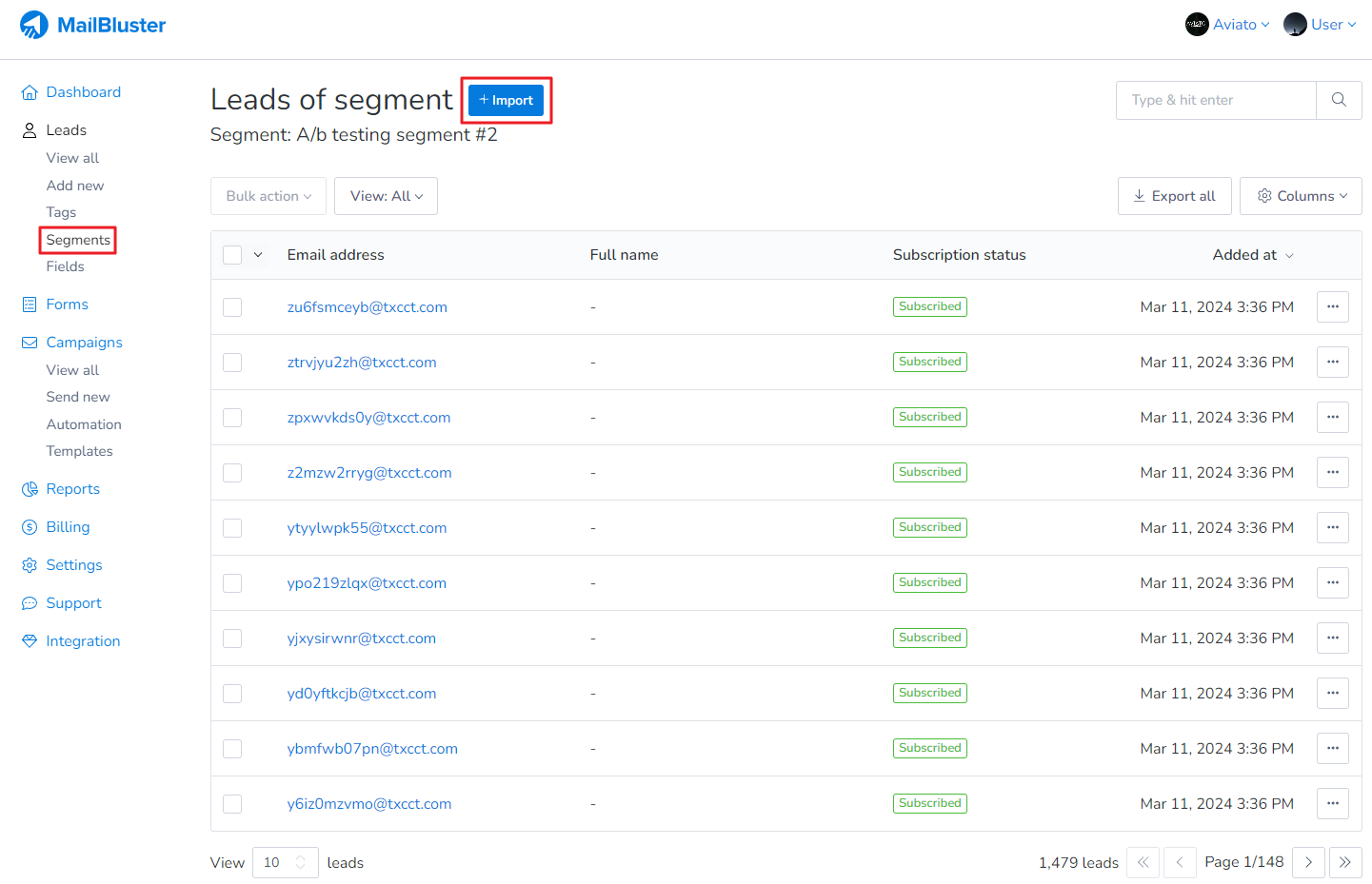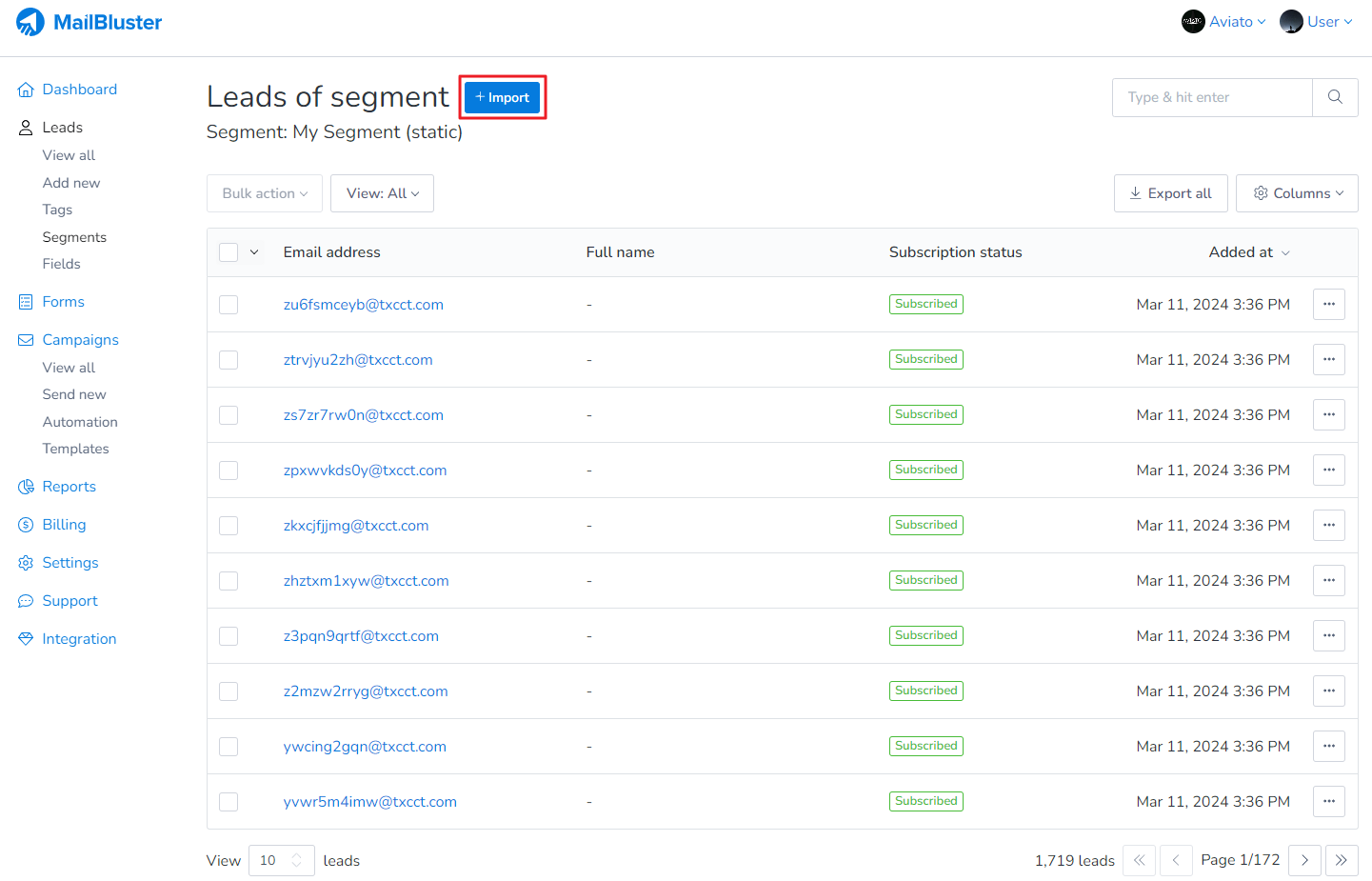 However, you can work around this limitation by splitting the CSV file using any third-party application and then importing the smaller files to MailBluster Leads.