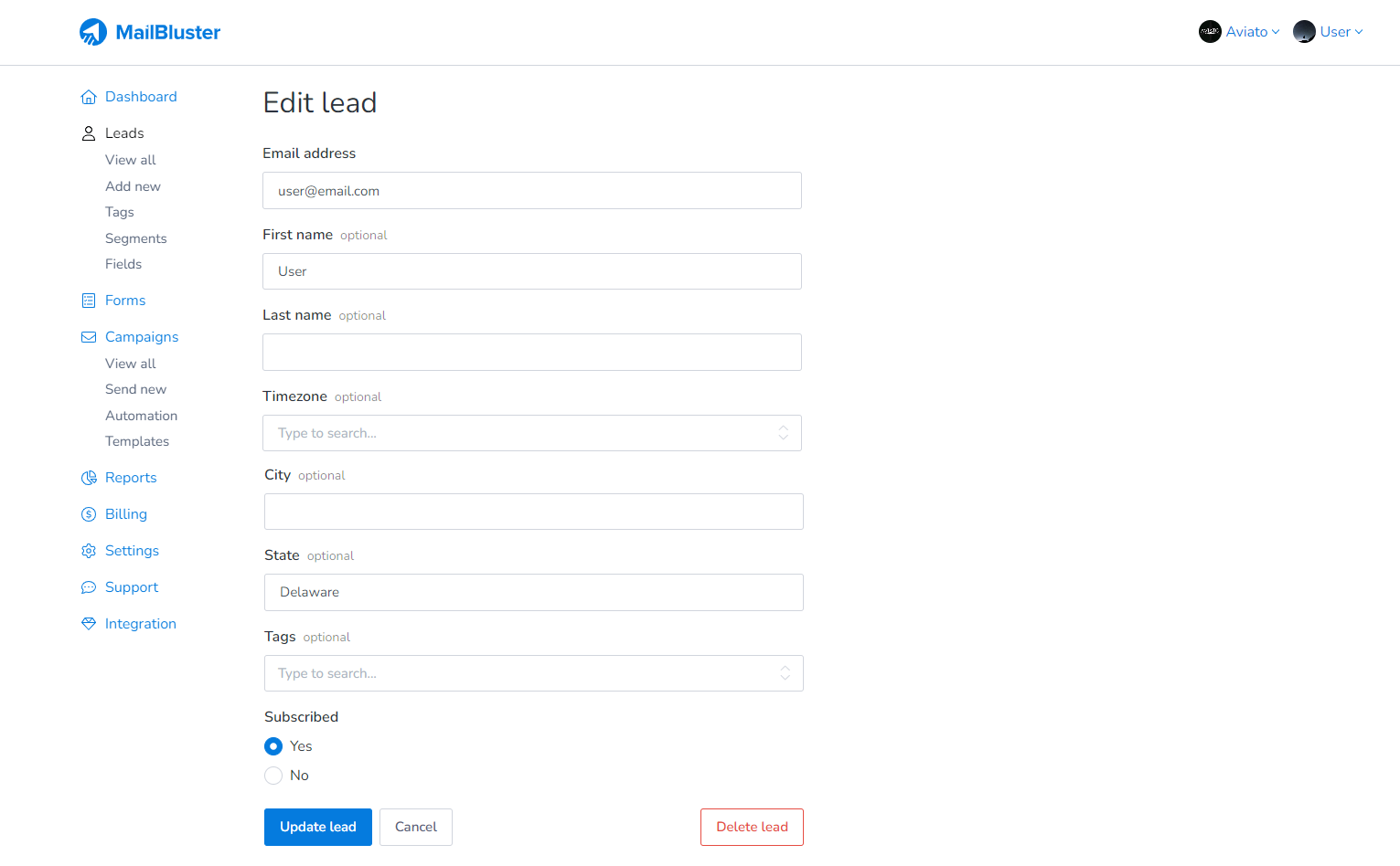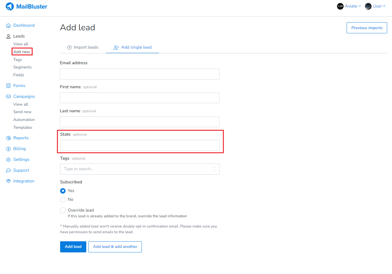 Override lead means that when a lead is added to the brand, any existing lead information will be updated with the new details. This ensures that MailBluster leads database stays current and accurate with the latest information.