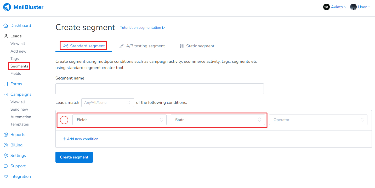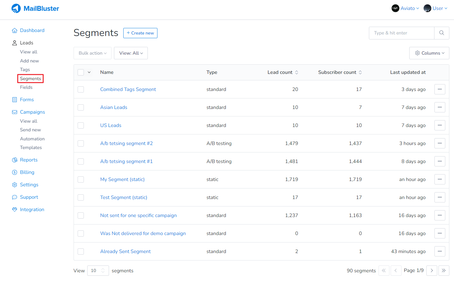 Go to you Brand > Segments and select any A/B testing segment. Notice the type of segment “A/B testing” and click on the segment which you want to import leads to.