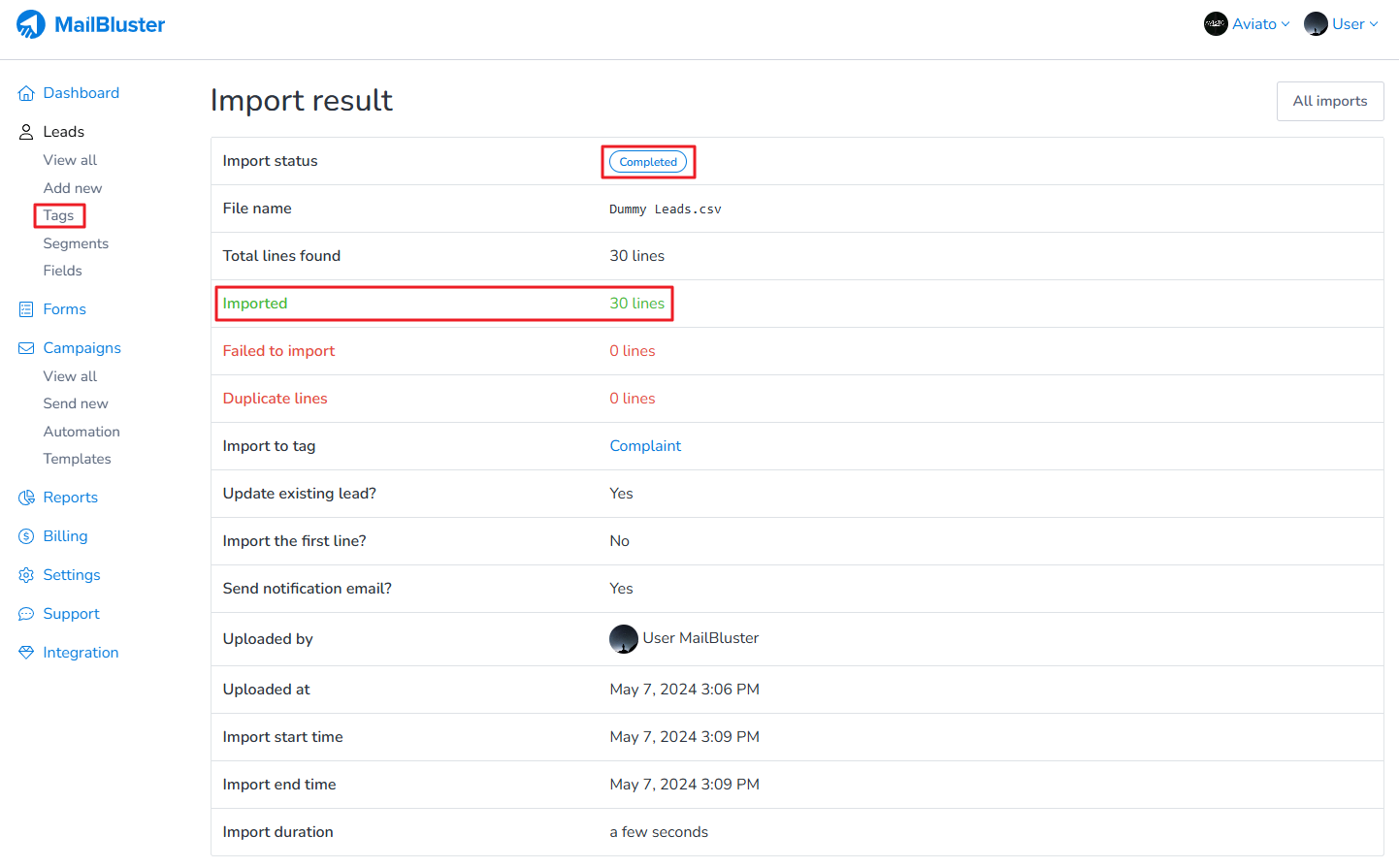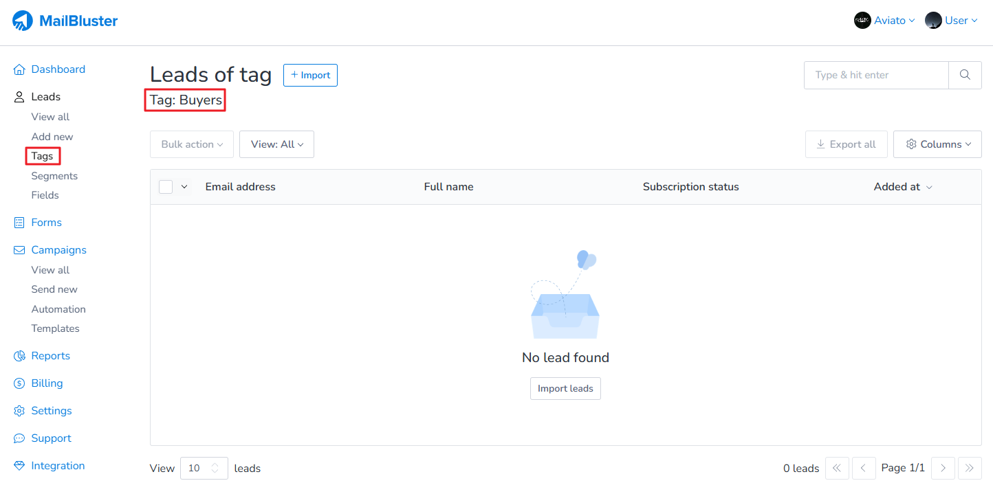 Now if you click on the Tags, you will notice that it now contains the imported leads. You can click on the tag to see all the imported leads.