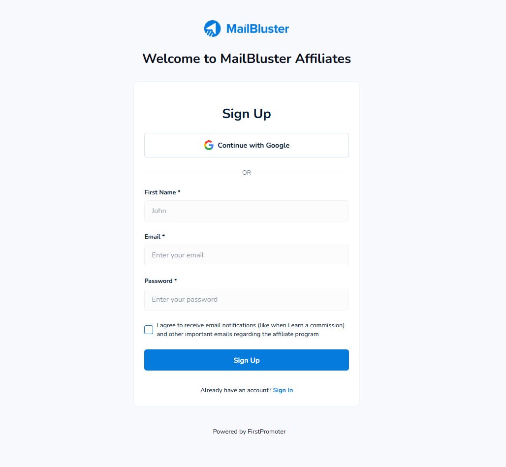 Please note, applicants must have an active MailBluster account to join the affiliate program.