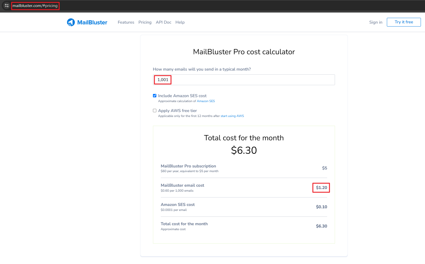 MailBluster pricing does not include Amazon SES Fees.