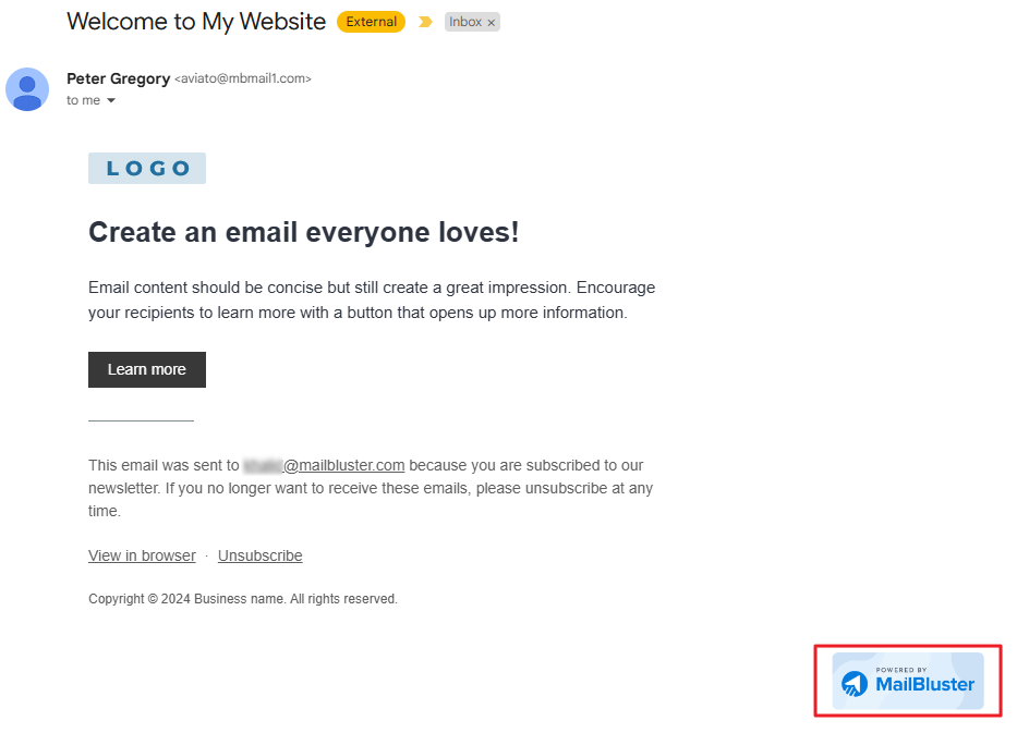 After receiving campaign mail, you will notice the MailBluster branding at the footer of your email.